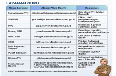 Website Nasty Berikut ini adalah beberapa link resmi pendidikan tahun 2026 yang perlu diketahui Guru. Kementerian Pendidikan Dasar dan Menengah (Kemendikdasmen) telah menyediakan sejumlah link pendidikan untuk dapat diakses guru di tahun 2026.