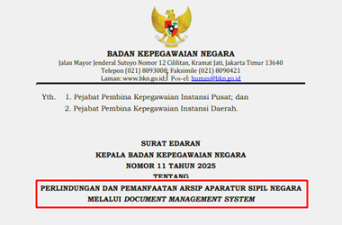 Berikut isi dari Surat Edaran Kepala BKN Nomor 11 Tahun 2025 tentang Pengeloaan Arsip ASN melalui DMS.